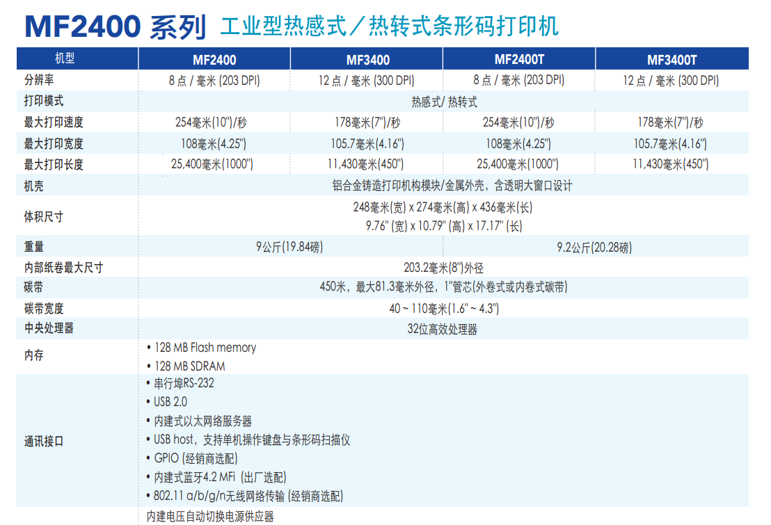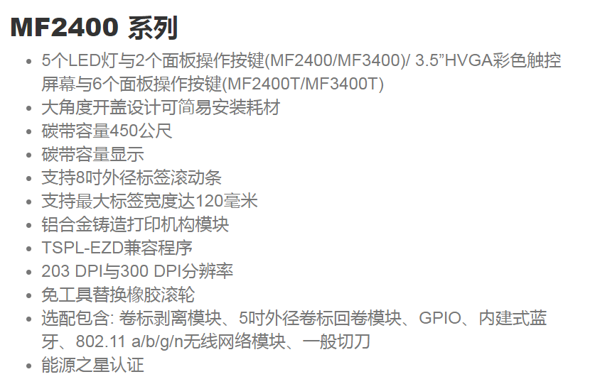 5個LED燈與2個面板操作按鍵(MF2400/MF3400)/ 3.5”HVGA彩色觸控屏幕與6個面板操作按鍵(MF2400T/MF3400T)