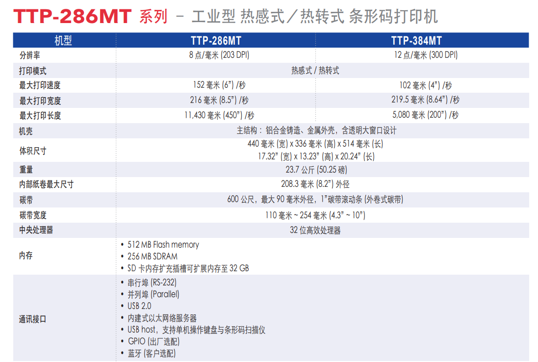 203 DPI 解析度之列印速度為6 IPS、300 DPI 解析度之列印速度為4 IPS
