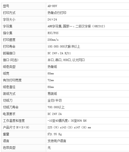 極速打印。維護簡便只需卸掉兩顆螺絲即可拆裝。紙卷直徑達80毫米。可接駁接口達4種,顧客可按習選擇接口。外觀簡潔,流線優美。