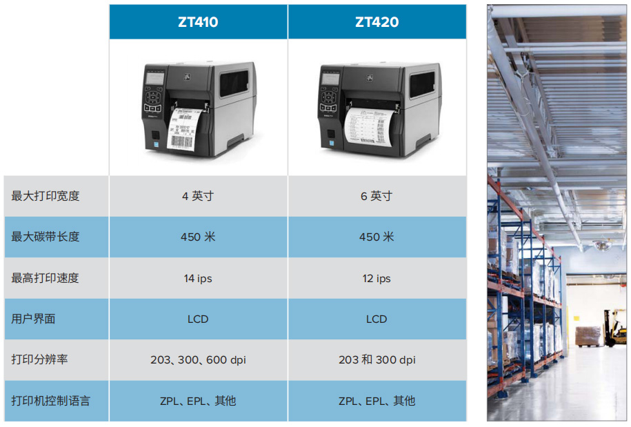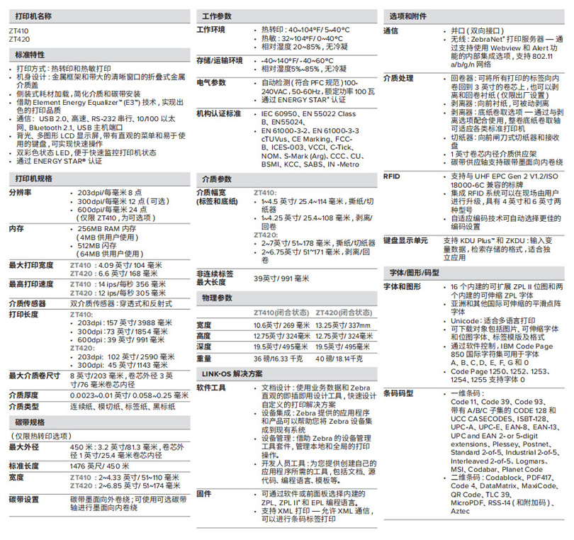ZT400系列具有兩種型號:ZT410和ZT420。