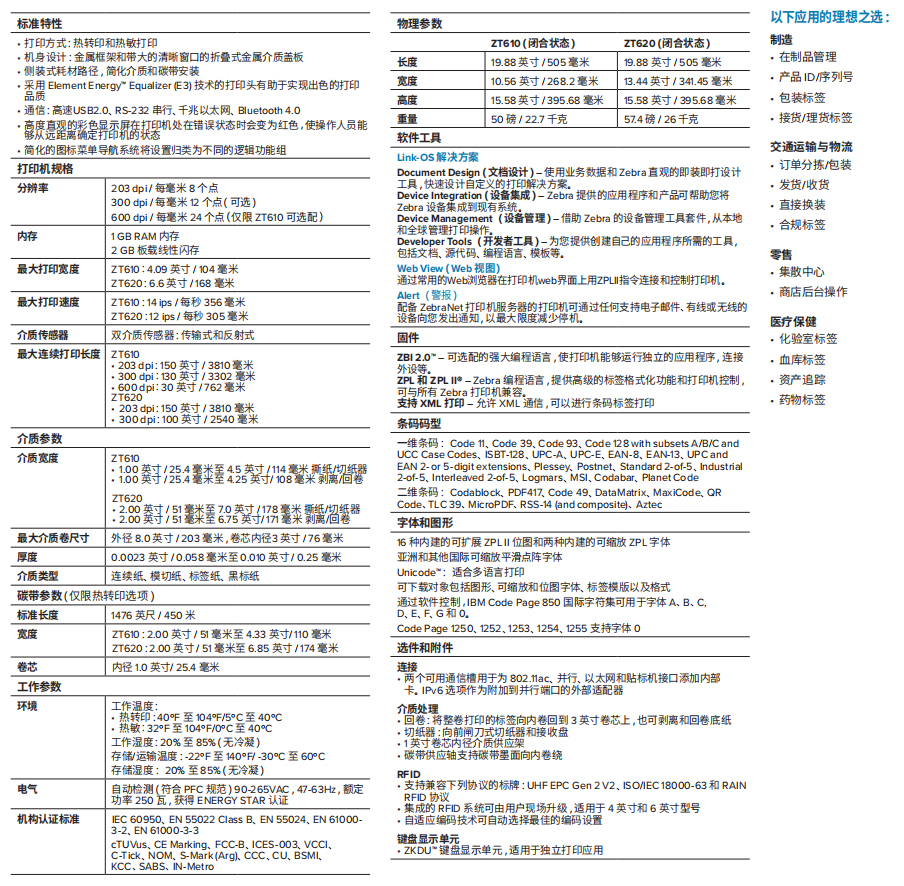 Zebra的工業(yè)打印機(jī)以其出色的耐用性、超快的打印速度、長(zhǎng)使用壽命以及的可靠性聞名于世。ZT610 和 ZT620 以這些傳統(tǒng)優(yōu)勢(shì)為基礎(chǔ)構(gòu)建而成,具備 Zebra工業(yè)打印機(jī)系列全面的先進(jìn)特性。為了在廣泛的應(yīng)用中確保關(guān)鍵運(yùn)營(yíng)順暢運(yùn)轉(zhuǎn),ZT600系列打印機(jī)可提供: