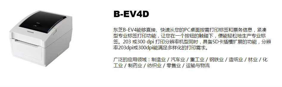 東芝B-EV4能夠直接、快速從您的PC桌面按需打印標簽和票務信息,緊湊型專業標簽打印功能,讓您在一個按鈕的觸碰下,便能輕松地生產專業標簽。